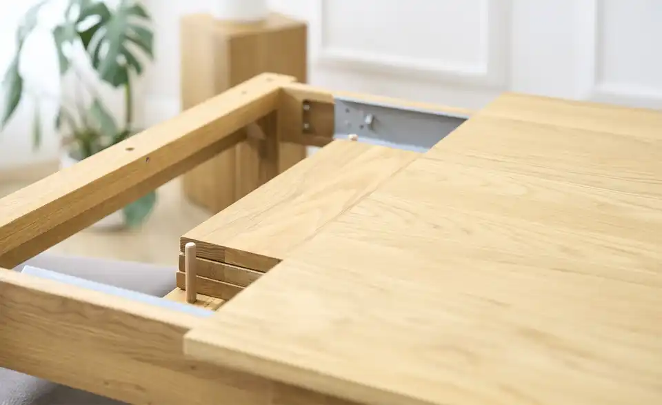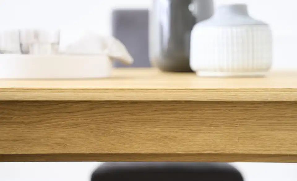 - AusführungTischplatte mit durchgehender Massivholzlamelle