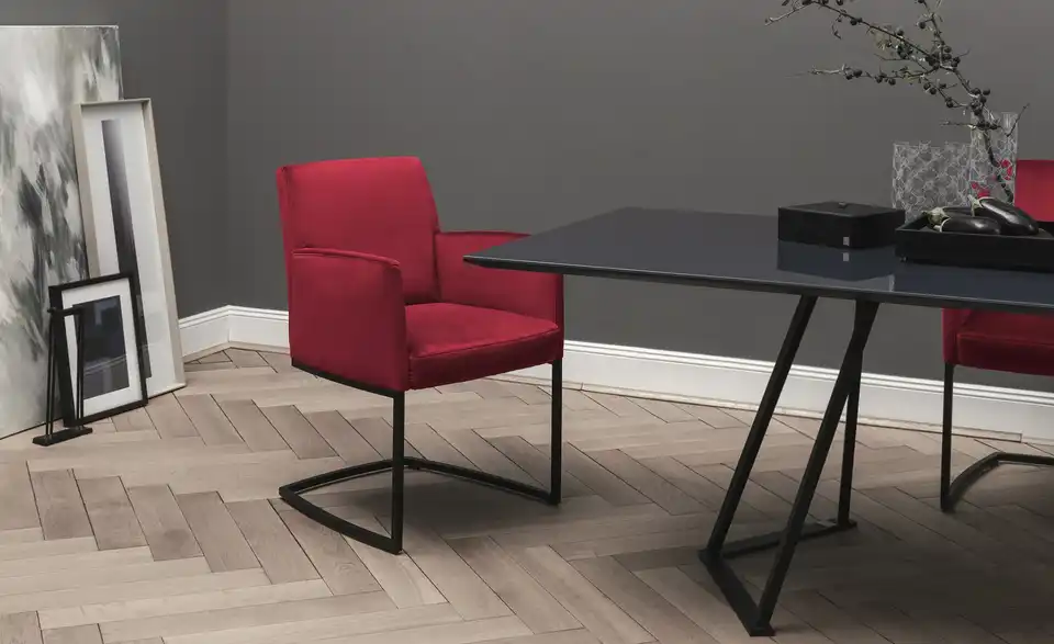 Wenn Sie Ihr Zuhause noch behaglicher gestalten möchten, dann ist dieser Stuhl genau die richtige Entscheidung für Sie. Das Marken-Modell von JOOP! besitzt bequeme Armlehnen, welche die individuelle Wohlfühlposition sichern. Der rote Stuhl hat eine Breite von 58 cm, eine Gesamthöhe von 88 cm und eine Tiefe von 61 cm. Wo auch immer Sie dieses Modell hinstellen, wird Ihr neuer Lieblingsort sein.Lieferung & Versand