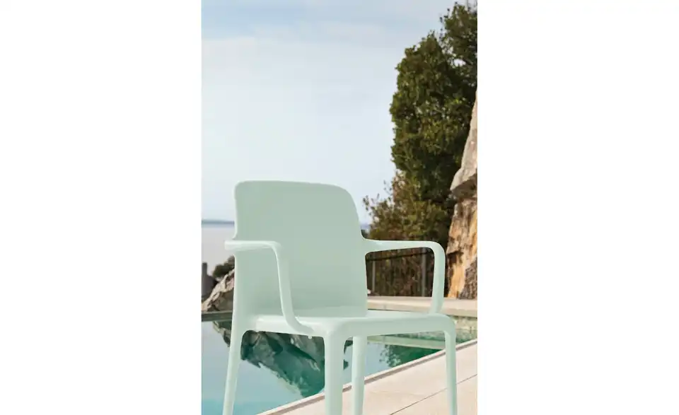 Sommerlich, pastellig und perfekt für den Außenbereich: Der Stuhl Bayo der Marke Connubia bringt italienisches Design jetzt auch nach draußen. Der minimalistisch designte Stuhl verzichtet auf überflüssige Linien und konzentriert sich auf das nötigste. Das Ergebnis: Ein absoluter Eyecatcher für Garten, Terrasse und Küche. Der verwendete recycelte Kunststoff ist pflegeleicht und wetterfest. Wählen Sie hier ganz einfach Ihre Lieblingsfarben und gestalten Sie Ihren Essbereich ganz nach Ihren Wünschen. Außerdem praktisch: Den trendigen Stuhl gibt es mit und ohne Armlehnen. So können Sie verschiedene Farben und Varianten miteinander kombinieren und Ihren Essbereich auflockern oder optisch unterteilen. Sie können bis zu vier dieser Stühle platzsparend übereinanderstapeln.