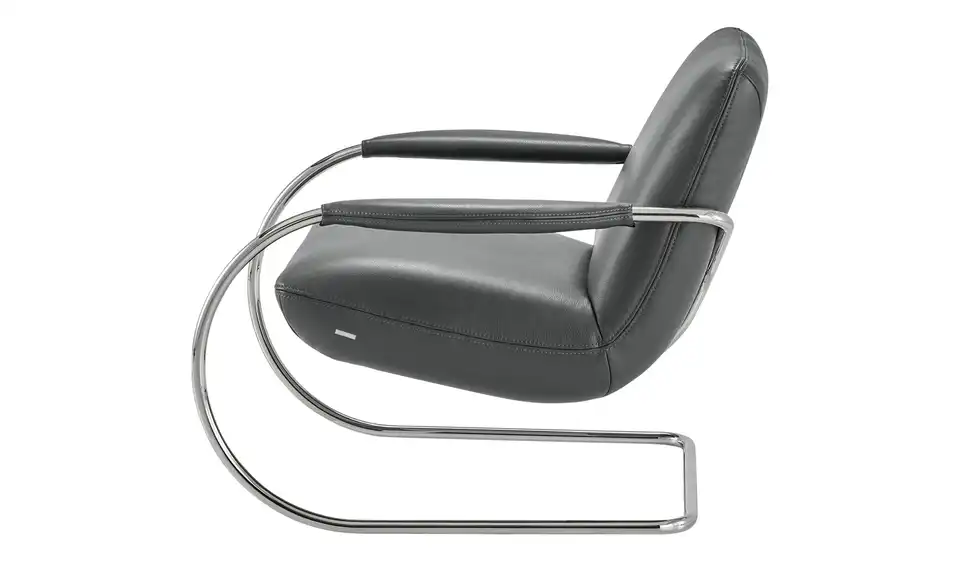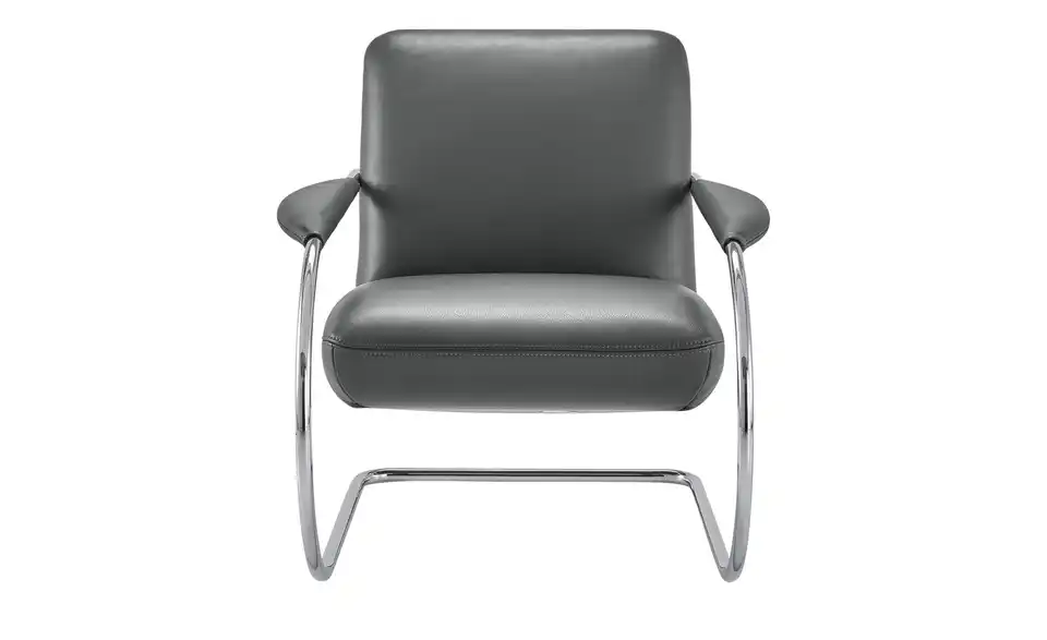 Dynamisches Sitzgefühl gepaart mit moderner Eleganz: Das ist der Freischwingersessel Jingle. Hochwertiges Echtleder und ein verspieltes Designgestell in edler Chrom-Optik machen den Sessel von KOINOR zu einem echten Blickfang. Der Echtlederbezug besitzt eine dekorative Doppelnaht und ist in zahlreichen kräftigen Farben erhältlich. Die Armlehnen sind teils mit Echtleder verziert und schaffen zwei flache Auflageflächen. Arrangieren Sie den Sessel zur bunten Sitzgruppe oder kombinieren Sie gleichfarbige Sessel: Der Freischwingersessel bietet zahlreiche Kombinationsmöglichkeiten. Unikate gefertigt in Bayern: Die Marke KOINOR steht für einzigartige Komfortfunktionen und individuelles Design. Unter Verwendung hochwertigster Materialien entstehen Möbel mit Vorzeigecharakter.Lieferung & Versand