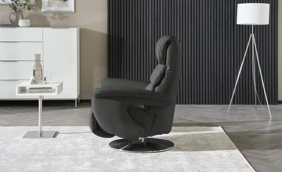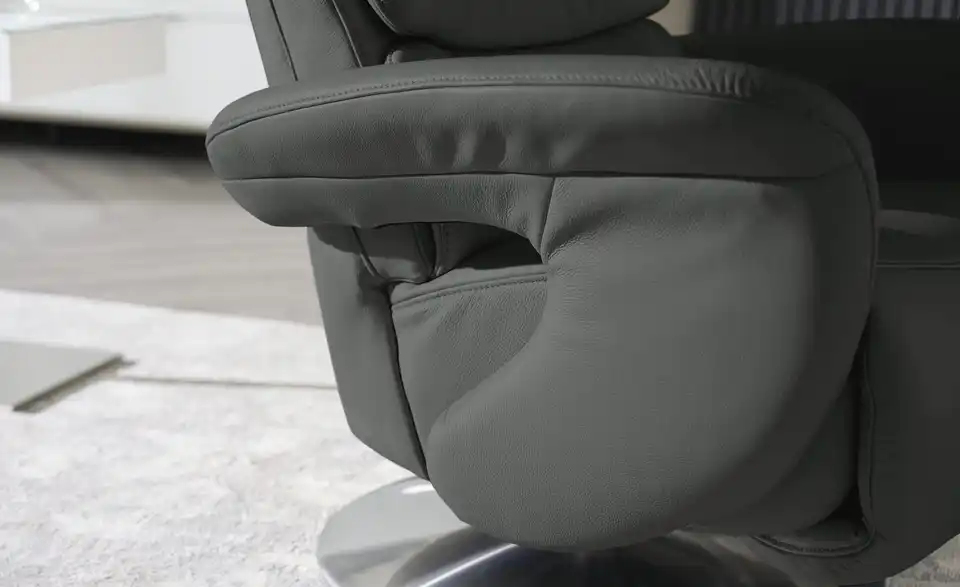 Entscheiden Sie sich für höchsten Sitzkomfort in stilvoller Form. Der Leder-Relaxsessel von himolla erfüllt auch hohe Erwartungen an Komfort und Design. Softes Echtleder umspannt den gesamten Sessel, welcher von einem Drehfuß in attraktiver Edelstahl-Optik getragen wird. Die hohe Rückenlehne besitzt drei besonders dick gepolsterte Bereiche und sorgt für Entspannung pur. Die breiten, weichen Armlehnen sind mit einer dekorativen Ton-in-Ton-Ziernaht versehen. Mit dem dezent integrierten Verstellhebel können Sie kinderleicht die Position der Rückenlehne anpassen. Die Fußstütze lässt sich mit etwas Körperdruck nach oben klappen. Den Leder-Relaxsessel von himolla gibt es in drei Ergonomiegrößen, sodass er Ihren individuellen Komfortansprüche noch besser entspricht. Polster gefertigt im bayrischen Taufkirchen: Von Menschen für Menschen. Die hochwertigen Funktionsmöbel der Marke himolla besitzen durchdachte Verstellfunktionen und begleiten Sie ein ganzes Möbelleben lang.Lieferung & Versand