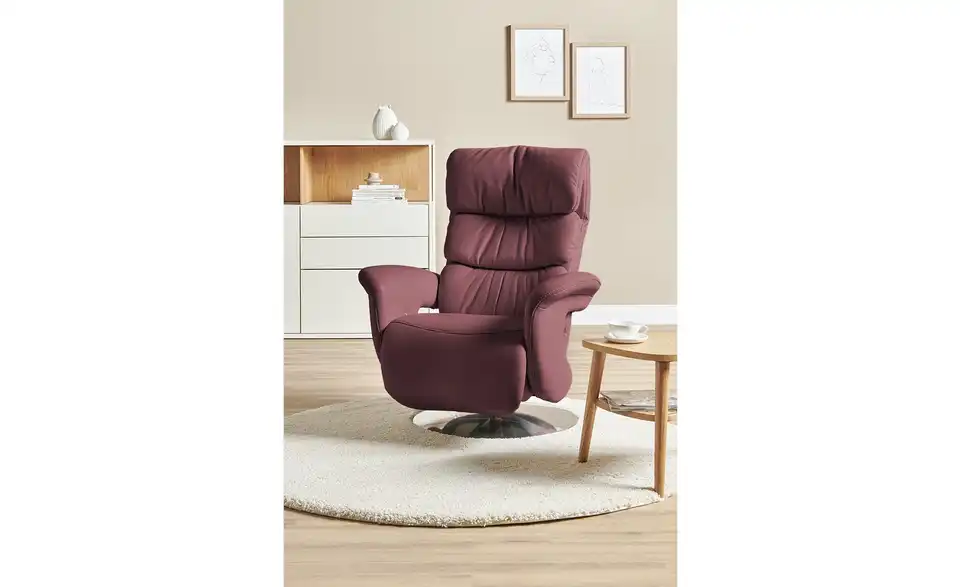 Entscheiden Sie sich für höchsten Sitzkomfort in stilvoller Form. Der Leder-Relaxsessel von himolla erfüllt auch hohe Erwartungen an Komfort und Design. Softes Echtleder umspannt den gesamten Sessel, welcher von einem Drehfuß in attraktiver Edelstahl-Optik getragen wird. Die hohe Rückenlehne besitzt drei besonders dick gepolsterte Bereiche und sorgt für Entspannung pur. Die breiten, weichen Armlehnen sind mit einer dekorativen Ton-in-Ton-Ziernaht versehen. Mit dem dezent integrierten Verstellhebel können Sie kinderleicht die Position der Rückenlehne anpassen. Die Fußstütze lässt sich mit etwas Körperdruck nach oben klappen. Den Leder-Relaxsessel von himolla gibt es in drei Ergonomiegrößen, sodass er Ihren individuellen Komfortansprüche noch besser entspricht. Polster gefertigt im bayrischen Taufkirchen: Von Menschen für Menschen. Die hochwertigen Funktionsmöbel der Marke himolla besitzen durchdachte Verstellfunktionen und begleiten Sie ein ganzes Möbelleben lang.Lieferung & Versand