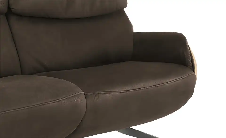 Hochwertiges Echtleder, moderne Metallkufenfüße und natürliche Massivholz-Applikationen: Durch seinen Materialmix wird dieses Sofa garantiert zum Hingucker in Ihren vier Wänden. Der Echtlederbezug ist mit dekorativen Ton-in-Ton-Nähten und einer Kedernaht verziert. Das betont die dick gepolsterten Sitz- und Rückenbereiche gekonnt. Lehnen Sie sich zurück und lassen Sie den Tag entspannt ausklingen. Durch die eleganten Kufenfüße aus gebürstetem Metall wirkt das Ledersofa anmutig und scheinbar schwerelos. Polster gefertigt im bayrischen Taufkirchen: Von Menschen für Menschen. Die hochwertigen Funktionsmöbel der Marke himolla besitzen durchdachte Verstellfunktionen und begleiten Sie ein ganzes Möbelleben lang.Lieferung & Versand