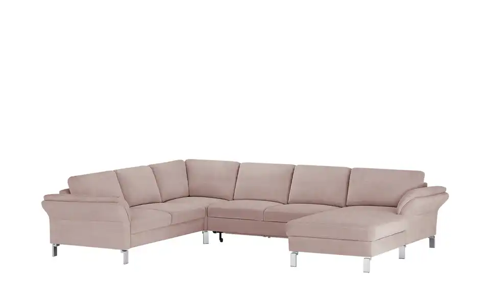 Diese Sitzgarnitur ist ein wahres Highlight und überzeugt zudem mit besonderem Sitzkomfort. Das Marken-Sofa von Max Schelling lädt auch dank der bequemen Polsterung aus PUR-Schaum zum Relaxen ein. Der Rücken der Couch ist echt bezogen, sodass sie auch mitten im Raum platziert werden kann. Das Gestell ist aus Metall gefertigt. Auf diesem ansprechenden Sofa können Sie es sich wunderbar gemütlich machen.bewusst wohnen