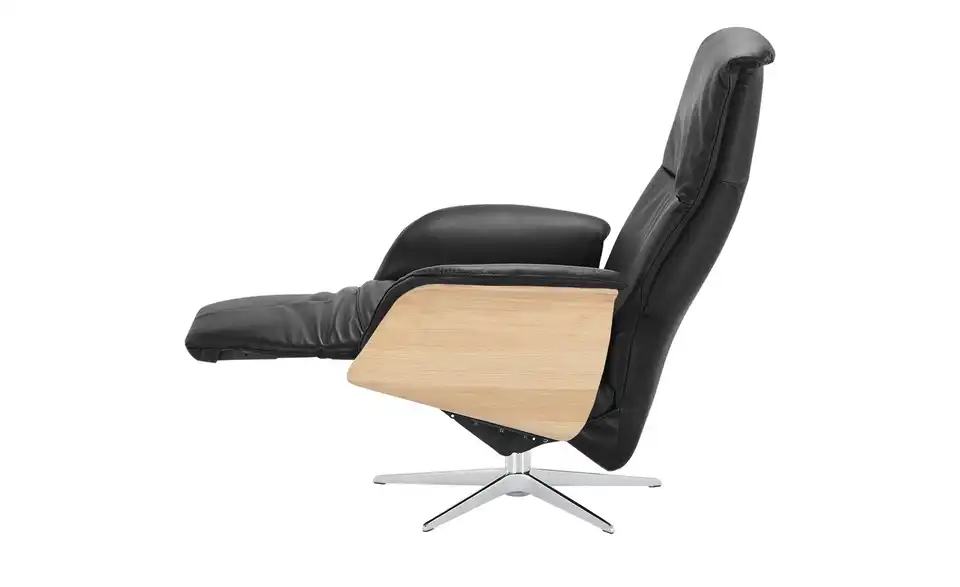 Zum Lesen, Entspannen oder für ein kleines Nickerchen eignet sich der Relaxsessel Frederick. Der Korpus ist mit Kunstleder bezogen. Sitzfläche und Rücken mit hochwertigem Echtleder. Die Holzschale samt Armlehnen besteht aus massiver Eiche. Das Holz setzt sich schön vom Lederbezug ab. Der Sessel steht sicher auf einem sternförmigen Fußteil aus Metall. Frederick ist drehbar und mit einer manuellen Relaxfunktion ausgestattet. So können Sie die Fußstütze und Rückenlehne verstellen. Das angenehme Sitzgefühl wird dank Wellenunterfederung und Kaltschaumpolsterung noch besser.Lieferung & Versand