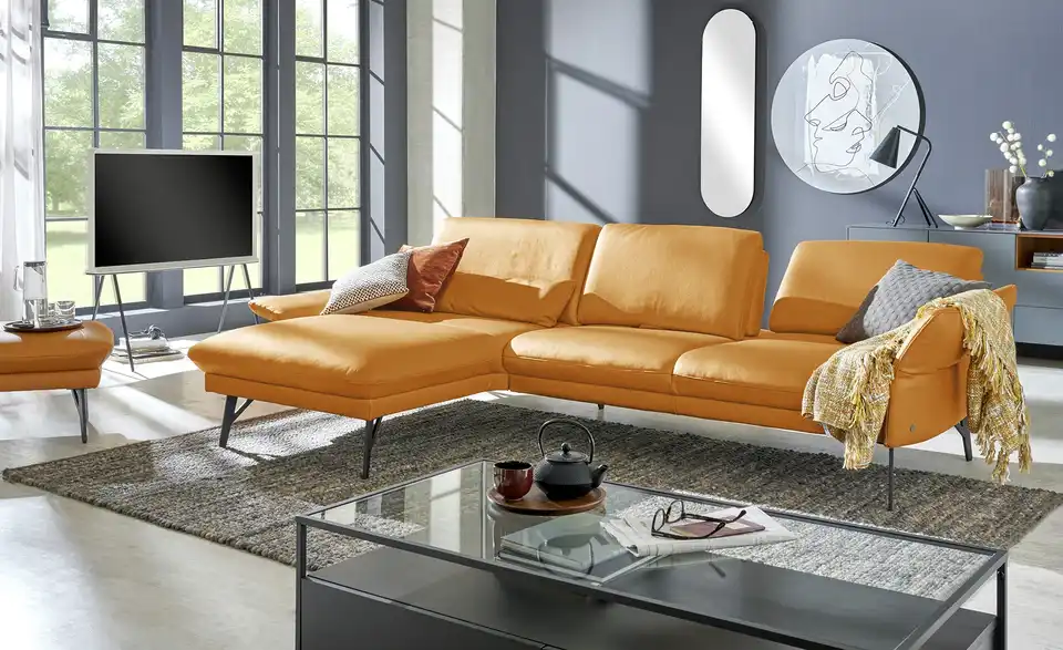 Dieses Sofa verbindet hochwertiges Echtleder und anthrazitfarbenes Metall zu einem loftig-modernen Design. Durch seine Kombination aus Polster in Markenqualität und zeitgemäßen Funktionen entsteht eine wahre Komfort-Oase, die sich sehen lassen kann. Verstellen Sie die Armlehnen mit nur einem Handgriff und passen Sie die Sitztiefe ganz Ihren Wünschen an. Strecken Sie sich auf der Ottomane aus und genießen Sie Zeit mit Freunden und Familie. Übrigens: Mit der passenden Kopfstütze und dem Hocker der Serie 1928 lässt sich das Ecksofa individuell Ihren Bedürfnissen anpassen. Polster gefertigt im bayrischen Taufkirchen: Von Menschen für Menschen. Die hochwertigen Funktionsmöbel der Marke himolla besitzen durchdachte Verstellfunktionen und begleiten Sie ein ganzes Möbelleben lang.Lieferung & Versand