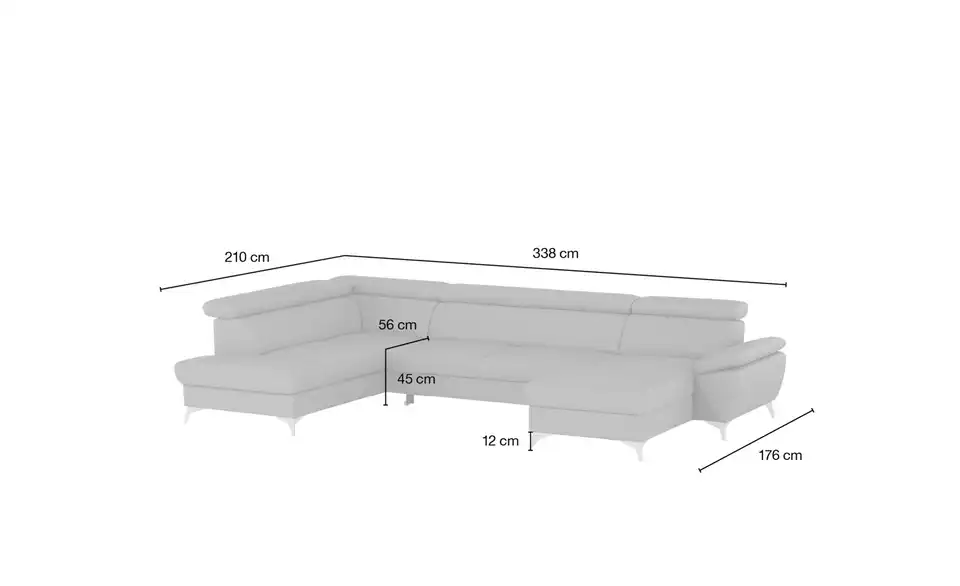 Perfekte Voraussetzungen zum komfortablen Entspannen und Sitzen bietet diese Wohnlandschaft. Sie haben es dank der Armteilverstellung und der Kopfteilverstellung auf dem Sofa Apollo allzeit gemütlich. Die Marken-Couch von uno lädt aufgrund der Polsterung aus Kaltschaum zum Entspannen ein. Der echt bezogene Rücken ermöglicht ein freies Platzieren im Raum. Das Modell Apollo besticht mit seinem Gestell aus Metall. Es dient durch einen im Lieferumfang enthaltenen Bettkasten als Stauraummöbel und nimmt insgesamt 338 x 96 x 210 cm ein. Lehnen Sie sich gemütlich zurück und genießen Sie die Entspannung auf diesem Sofa.Lieferung & Versand
