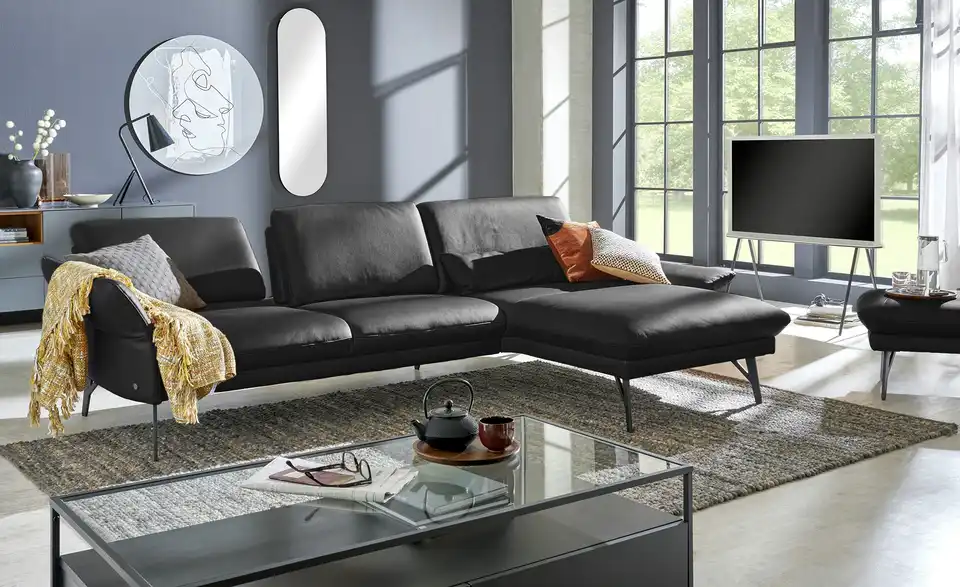 Dieses Sofa verbindet hochwertiges Echtleder und anthrazitfarbenes Metall zu einem loftig-modernen Design. Durch seine Kombination aus Polster in Markenqualität und zeitgemäßen Funktionen entsteht eine wahre Komfort-Oase, die sich sehen lassen kann. Verstellen Sie die Armlehnen mit nur einem Handgriff und passen Sie die Sitztiefe ganz Ihren Wünschen an. Strecken Sie sich auf der Ottomane aus und genießen Sie Zeit mit Freunden und Familie. Übrigens: Mit der passenden Kopfstütze und dem Hocker der Serie 1928 lässt sich das Ecksofa individuell Ihren Bedürfnissen anpassen. Polster gefertigt im bayrischen Taufkirchen: Von Menschen für Menschen. Die hochwertigen Funktionsmöbel der Marke himolla besitzen durchdachte Verstellfunktionen und begleiten Sie ein ganzes Möbelleben lang.Lieferung & Versand