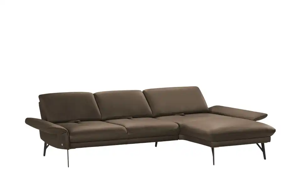 Dieses Sofa verbindet hochwertiges Echtleder und anthrazitfarbenes Metall zu einem loftig-modernen Design. Durch seine Kombination aus Polster in Markenqualität und zeitgemäßen Funktionen entsteht eine wahre Komfort-Oase, die sich sehen lassen kann. Verstellen Sie die Armlehnen mit nur einem Handgriff und passen Sie die Sitztiefe ganz Ihren Wünschen an. Strecken Sie sich auf der Ottomane aus und genießen Sie Zeit mit Freunden und Familie. Übrigens: Mit der passenden Kopfstütze und dem Hocker der Serie 1928 lässt sich das Ecksofa individuell Ihren Bedürfnissen anpassen. Polster gefertigt im bayrischen Taufkirchen: Von Menschen für Menschen. Die hochwertigen Funktionsmöbel der Marke himolla besitzen durchdachte Verstellfunktionen und begleiten Sie ein ganzes Möbelleben lang.Lieferung & Versand