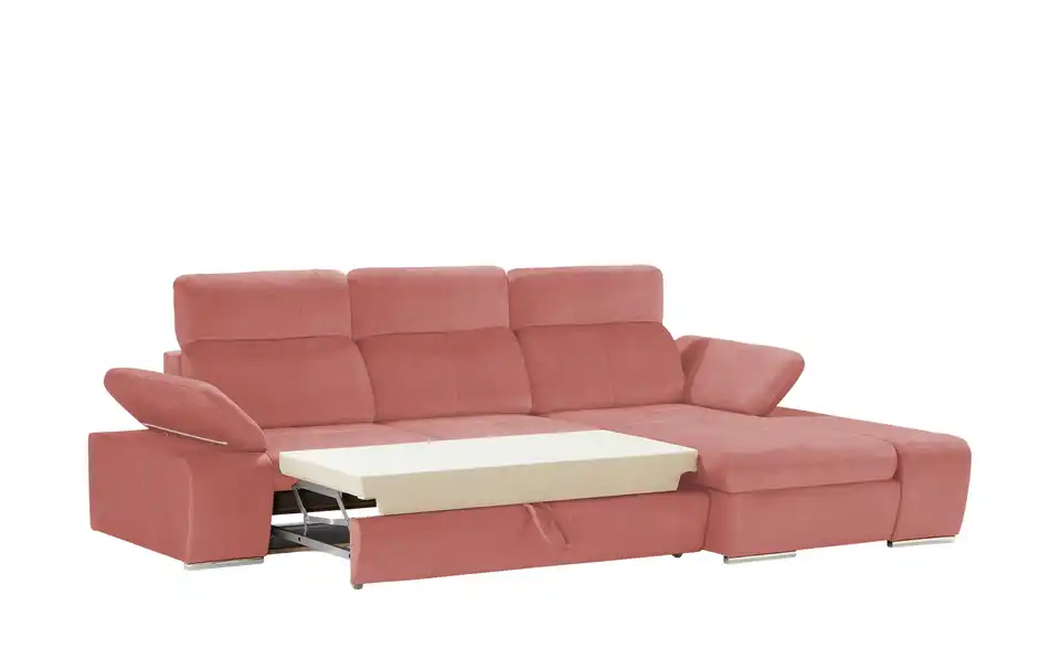 Mit dem Ecksofa Avilla schaffen Sie sich ganz leicht Ihre eigene Wohlfühl-Oase. Dicke Polster und einladende Arm- und Rückenlehnen sorgen für den nötigen Komfort. Verstellen Sie die Kopfteile und klappen Sie die Armlehnen kinderleicht hoch: Avilla passt sich Ihren Bedürfnissen problemlos an. Die gesamte Couch ist mit einem edlen, weichen Mikrofaserstoff in Veloursoptik bezogen und besitzt chromfarbene Füße, die einen attraktiven Kontrast setzten. Übrigens: Wählen Sie die erweiterte Funktion, wenn Sie häufiger Übernachtungsgäste empfangen. Avilla ist dann zusätzlich mit einem geräumigen Bettkasten und einer praktischen Schlaffunktion ausgestattet.bewusst wohnen