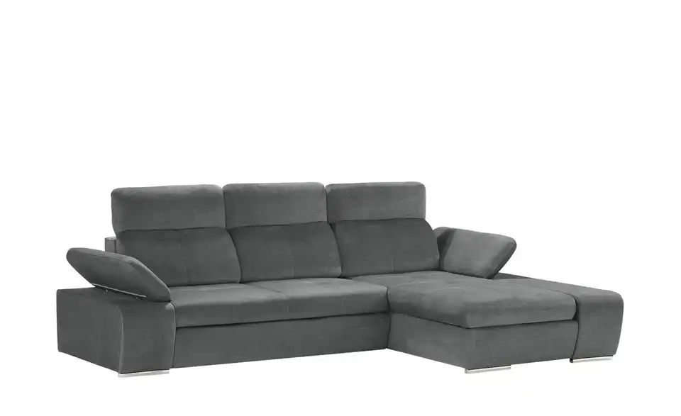 Mit dem Ecksofa Avilla schaffen Sie sich ganz leicht Ihre eigene Wohlfühl-Oase. Dicke Polster und einladende Arm- und Rückenlehnen sorgen für den nötigen Komfort. Verstellen Sie die Kopfteile und klappen Sie die Armlehnen kinderleicht hoch: Avilla passt sich Ihren Bedürfnissen problemlos an. Die gesamte Couch ist mit einem edlen, weichen Mikrofaserstoff in Veloursoptik bezogen und besitzt chromfarbene Füße, die einen attraktiven Kontrast setzten. Übrigens: Wählen Sie die erweiterte Funktion, wenn Sie häufiger Übernachtungsgäste empfangen. Avilla ist dann zusätzlich mit einem geräumigen Bettkasten und einer praktischen Schlaffunktion ausgestattet.bewusst wohnen