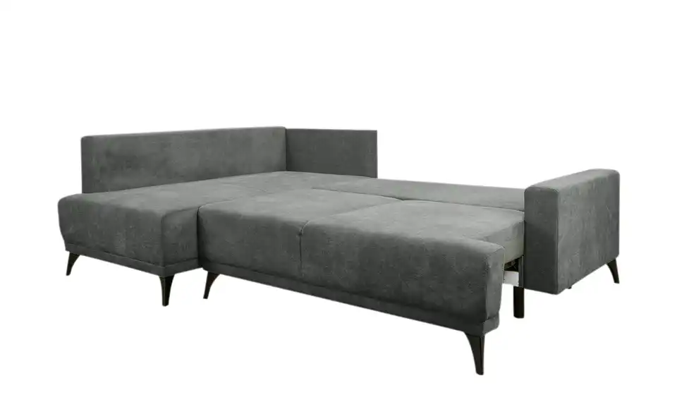 Das Ecksofa Lima verschafft Ihrem Zuhause zusätzliche Bequemlichkeit. Das Sofa ist dank des echt bezogenen Rückens frei im Raum platzierbar und lädt aufgrund des Federkerns zum Relaxen ein. Es besticht mit seinem Gestell aus Metall. Das Modell Lima verfügt über einen Bettkasten und nimmt 169 x 90 x 246 cm ein. Mit dieser Couch bringen Sie Entspannung in Ihre vier Wände.Lieferung & Versand