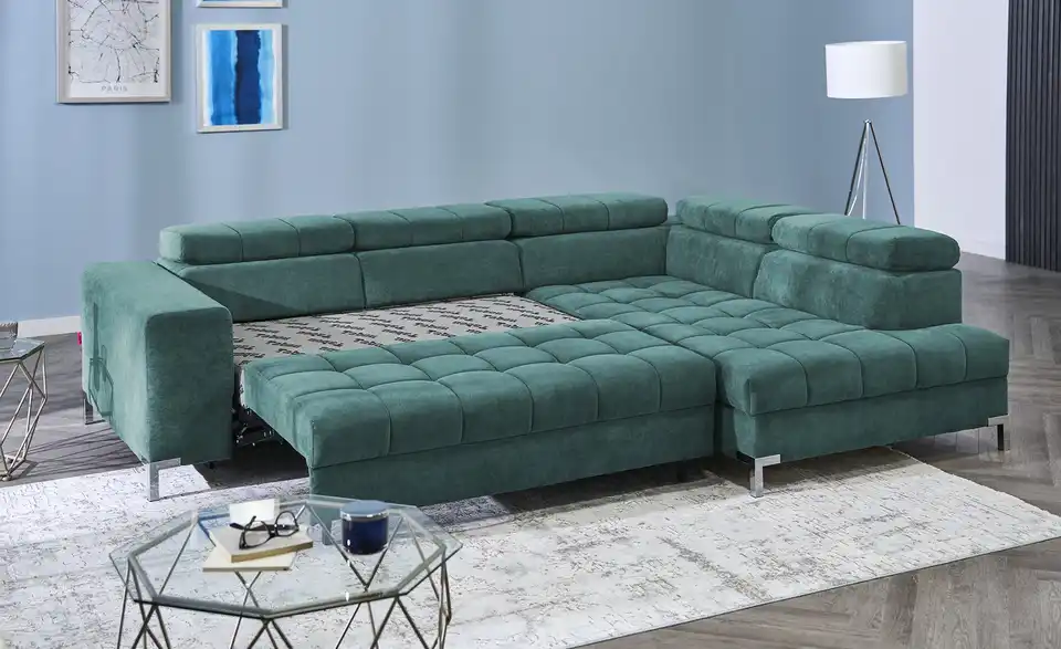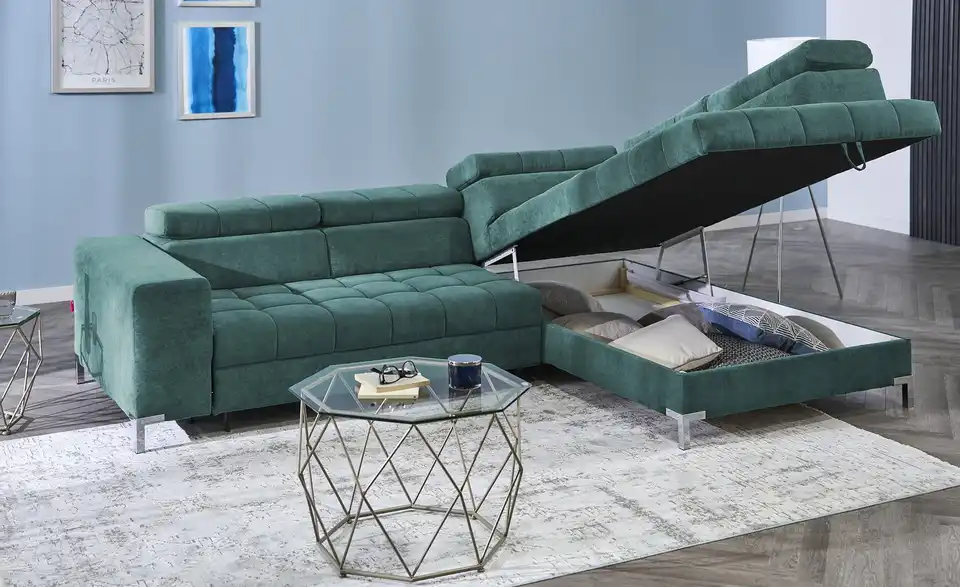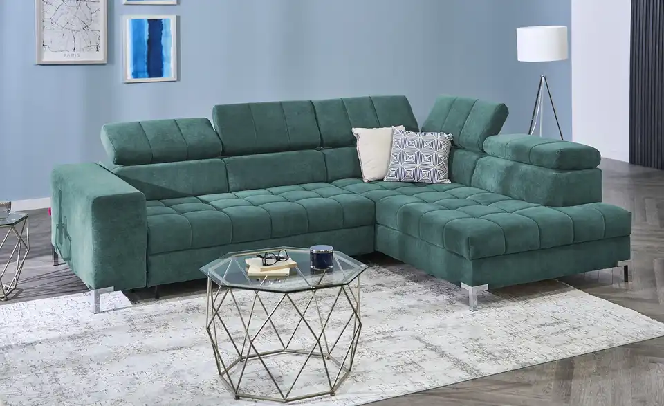 Nach einem anstrengenden Arbeitstag ist das Ecksofa Arte genau der richtige Ort zum Ausspannen. Das Sofa ist aufgrund der Kopfteilverstellung eine absolute Oase der Entspannung, lädt dank des Federkerns sowie der Polsterung aus Schaumstoff zum Relaxen ein und ist frei im Raum platzierbar. Es besitzt ein Gestell, welches aus Metall gefertigt ist. Das Modell Arte bringt einen im Lieferumfang enthaltenen Bettkasten mit, lädt mit der stattlichen Sitztiefe von 62 cm zum Entspannen ein und nimmt insgesamt 284 x 97 x 200 cm ein. Lehnen Sie sich gemütlich zurück und lassen Sie sich von diesem Sofa umschmeicheln.Lieferung & Versand