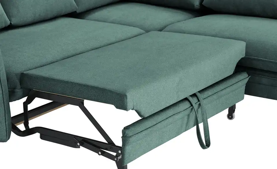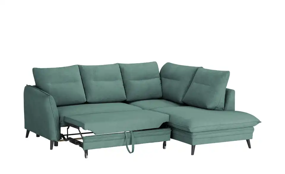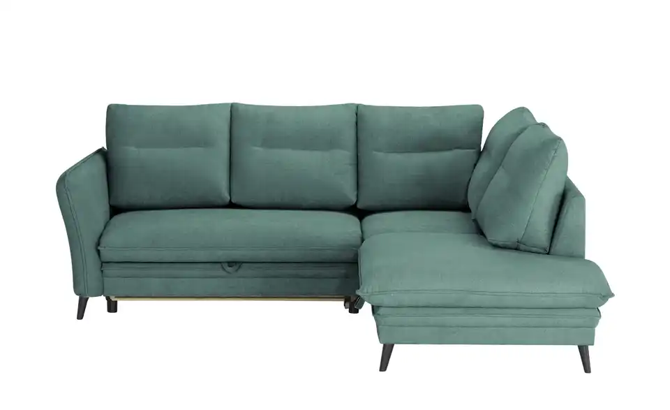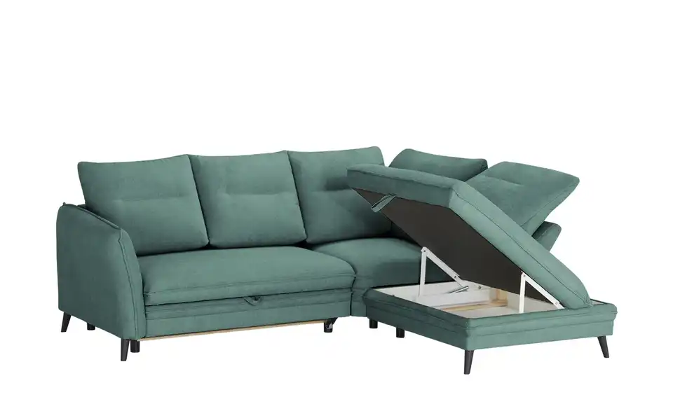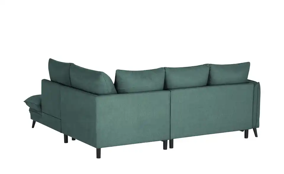 Das Ecksofa Wilma sorgt für zusätzliche Behaglichkeit in jedem Zuhause. Die Couch ist mit einem echt bezogenen Rücken ausgestattet, damit sie auch mittig im Raum platziert werden kann, und garantiert mit der Polsterung aus Schaumstoff hohen Sitzkomfort. Das Gestell besteht aus Massivholz. Das Modell Wilma ist mit einem Bettkasten, in dem die Bettwäsche verstaut werden kann, ausgestattet. Um Zierkissen und Rückenkissen müssen Sie sich nicht mehr kümmern, denn diese sind bereits im Lieferumfang enthalten. 245 x 95 x 203 cm sind als Gesamtstellmaß einzuplanen. Diese Couch verspricht gemütliches Wohnen mit Entspannung und Flair.Lieferung & Versand