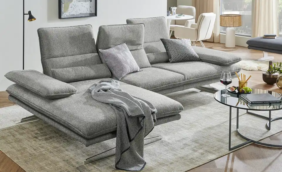 Dieses Ecksofa ist genau der richtige Ort zum Entspannen nach einem ermüdenden Tag. Die Marken-Couch von W.SCHILLIG lässt, was den Komfort angeht, mit Sitztiefenverstellung keine Wünsche offen. Sie lädt aufgrund des Federkerns sowie der bequemen Polsterung aus Kaltschaum zum Wohlfühlen ein und kann dank des echt bespannten Rückens frei im Raum aufgestellt werden. Ein Gestell, welches aus Metall besteht, ist die Basis der Couch. Das Modell Broadway nimmt insgesamt 291 x 94 x 164 cm ein. Diese Couch wird im Handumdrehen zur zuverlässigen Oase der Behaglichkeit, welche Ihre vier Wände optisch wie funktionell aufzuwerten weiß.Lieferung & Versand