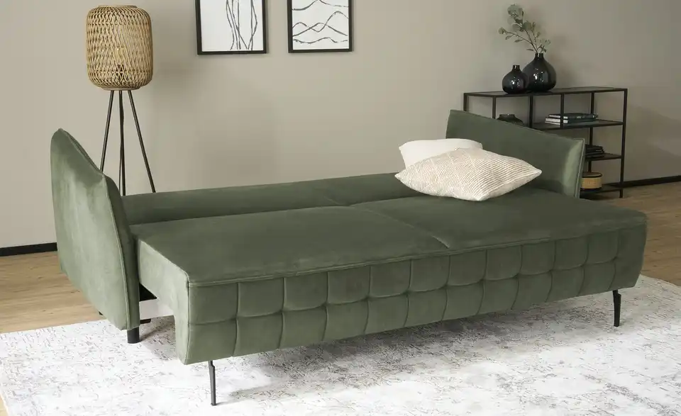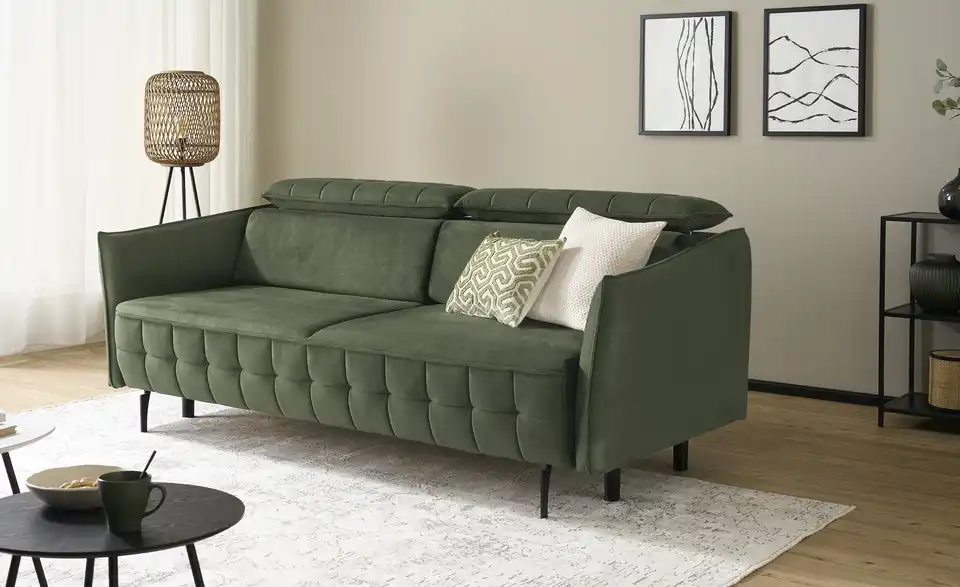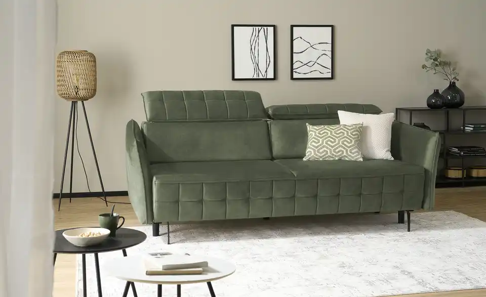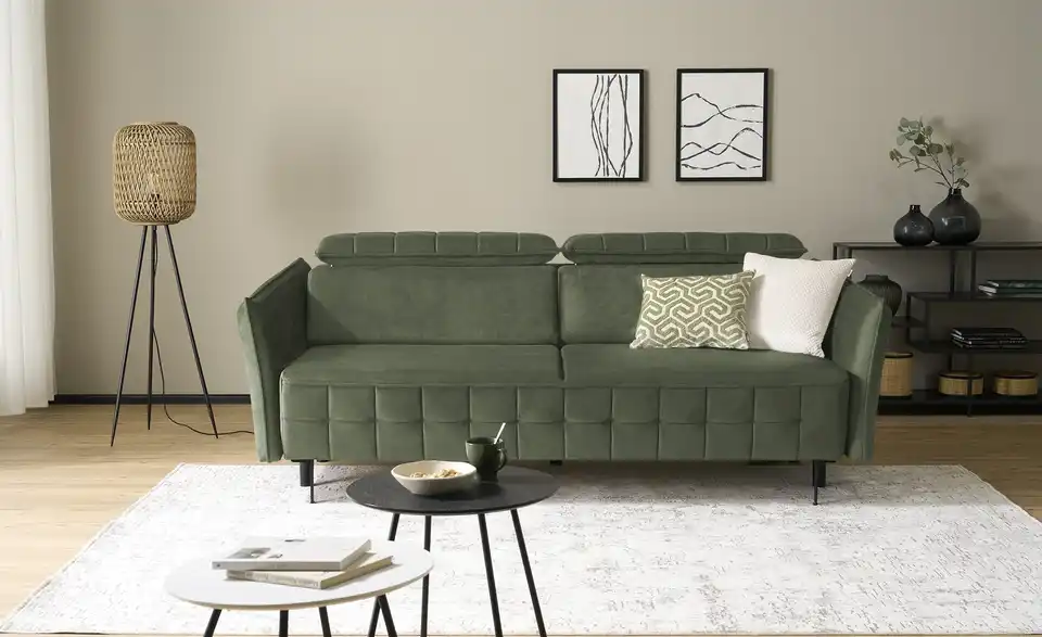 Hinsetzen, zurücklehnen und entspannen: Das komfortable Bigsofa Momoka sorgt für zusätzliche Gemütlichkeit. Der Retro-Stil harmoniert ausgezeichnet mit geradezu jedem Einrichtungskonzept. Sämtliche Qualitäten und Highlights der Marke smart kommen in diesem Sitzmöbel zusammen. Der Rücken des Sofas ist echt bespannt, sodass es ohne Probleme mittig im Raum platziert werden kann. Der Rahmen ist aus Metall hergestellt. Das Modell Momoka wird durch die Bettfunktion schnell zu einem gemütlichen Gästebett und nimmt insgesamt 226 x 90 x 104 cm ein. Mit diesem Sofa richten Sie Ihre vier Wände behaglich ein.Lieferung & Versand