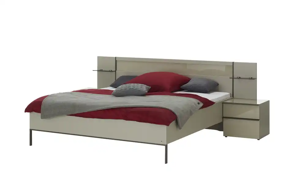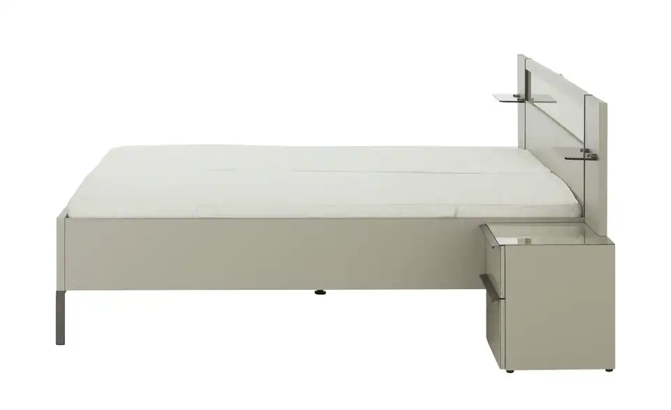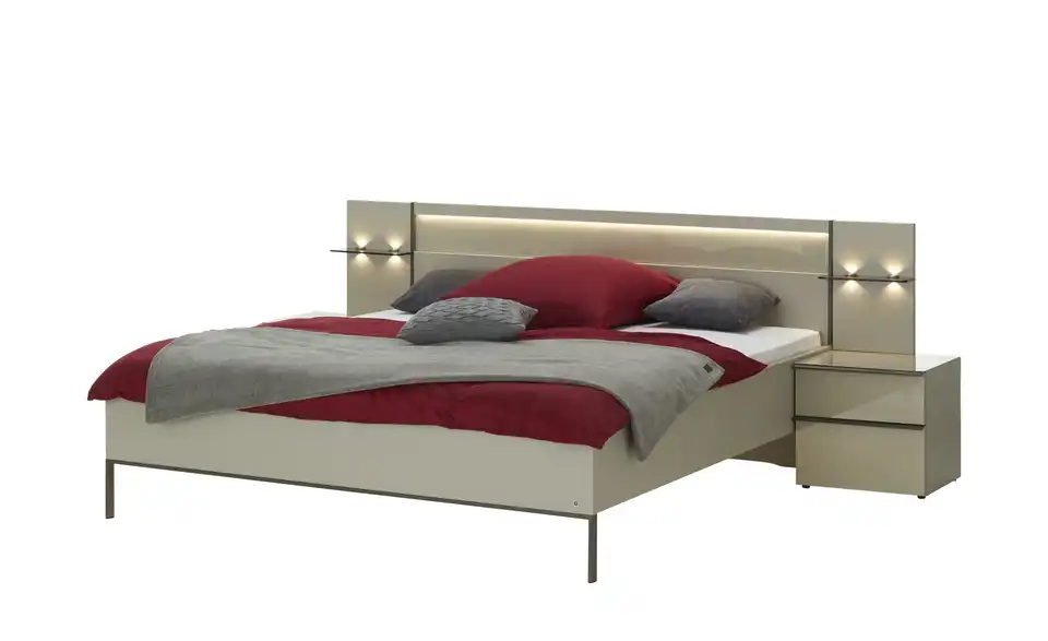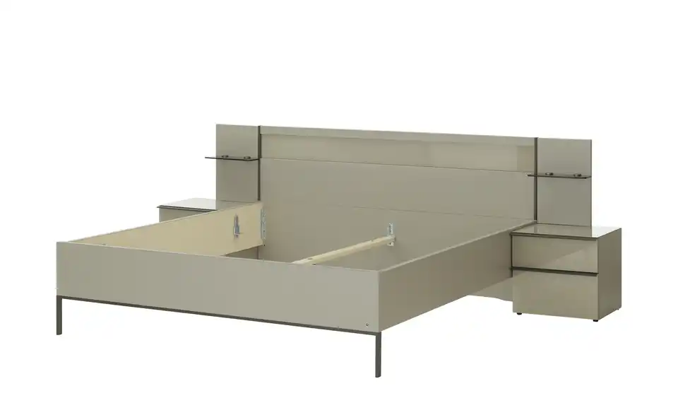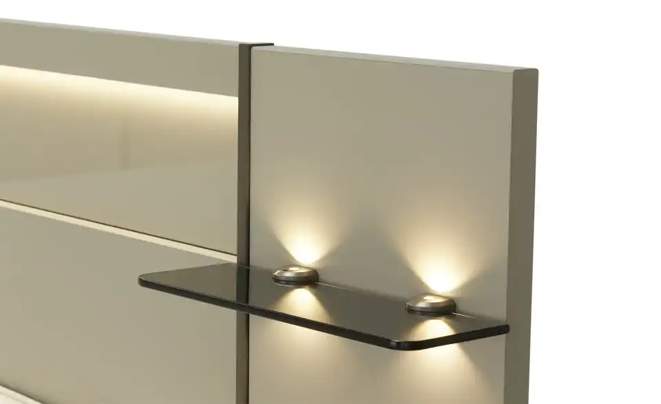 - Mehr zu AusführungBettanlage inklusive Nachtkonsolen Paar mit je 2 SchublkästenLED-KopfteilbeleuchtungBeleuchtungsset für FußteilNachtkonsolen-Paneel-Paar mit Rauchglasboden und LED-Beleuchtung
