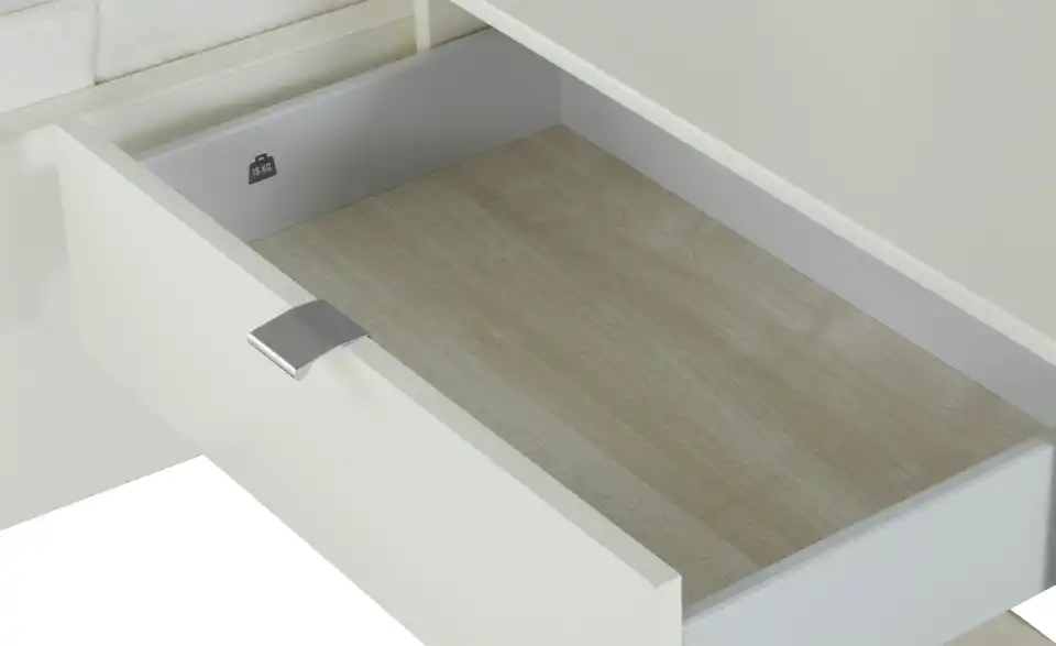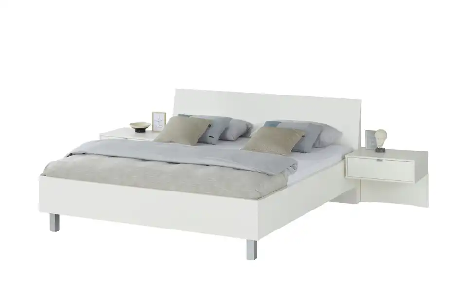 - Lieferumfang / mitgeliefertes ZubehörBettanlage mit Nachtkommoden mit je einem Schub, schwebend