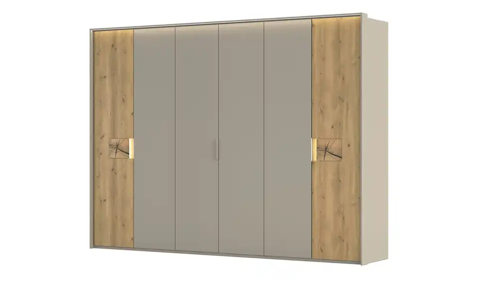 - Mehr zu AusführungInkl. LED-Beleuchtung der Griffmulden in den Außentüren und Passepartoutrahmen mit LED-Beleuchtung