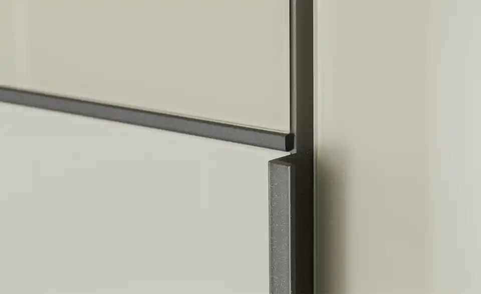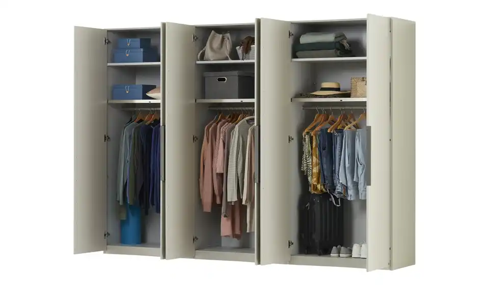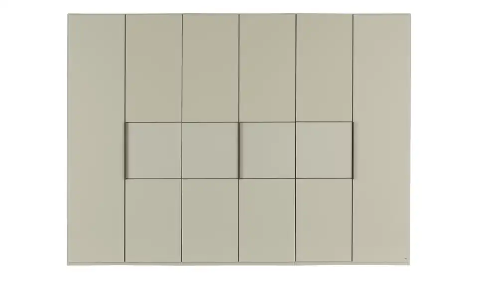 - Mehr zu Ausführung6 türiger Kleiderschrank mit kieselgrauen Glasfronten und matten kieselgrauen Elementen in den Mitteltüren