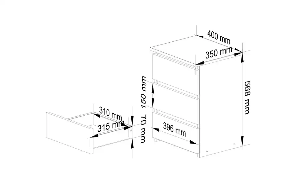- max. Belastbarkeit je Schubkasten bis ca.3 kg