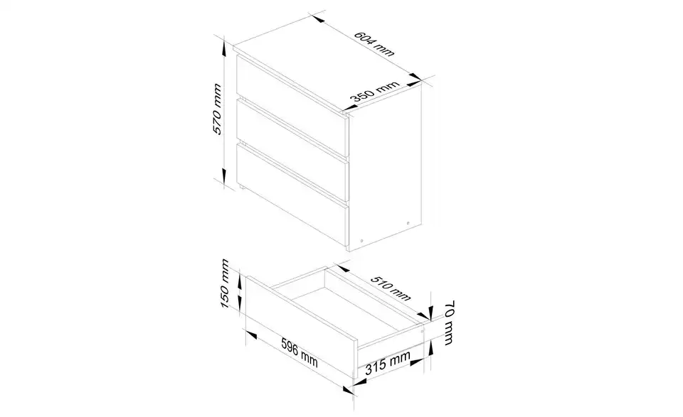 - max. Belastbarkeit je Schubkasten bis ca.3 kg