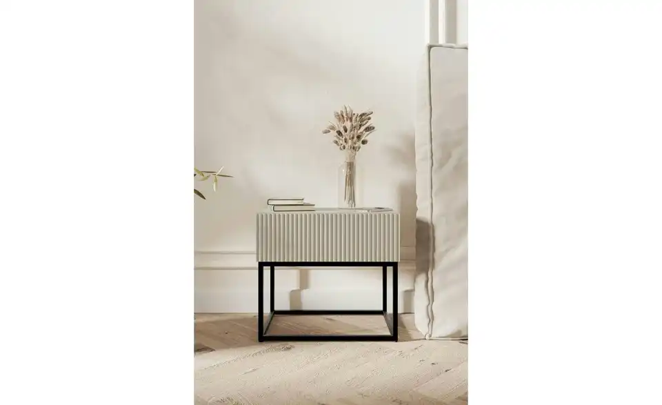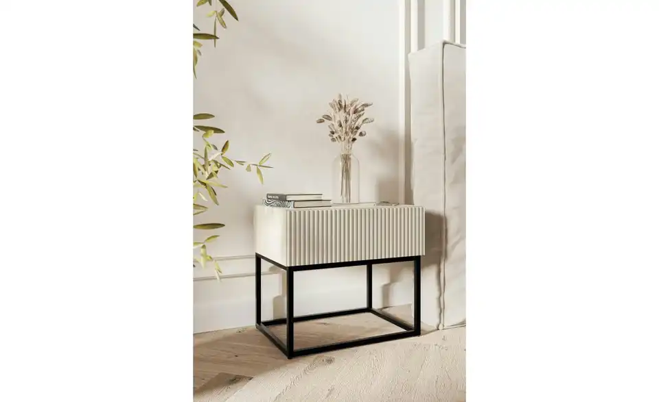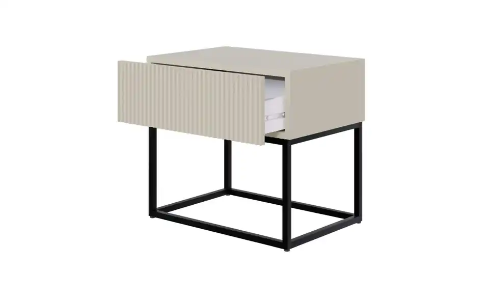 - Lieferumfang / mitgeliefertes ZubehörBeiger Nachttisch mit schwarzem Kufengestell