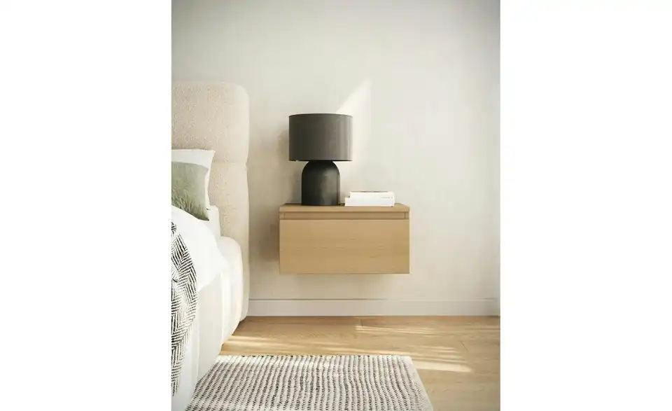 - Lieferumfang / mitgeliefertes ZubehörEichefarbener Nachttisch hängend