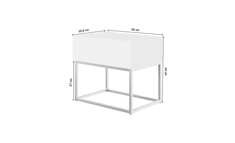 - Lieferumfang / mitgeliefertes ZubehörWeißer Nachttisch mit schwarzem Kufengestell