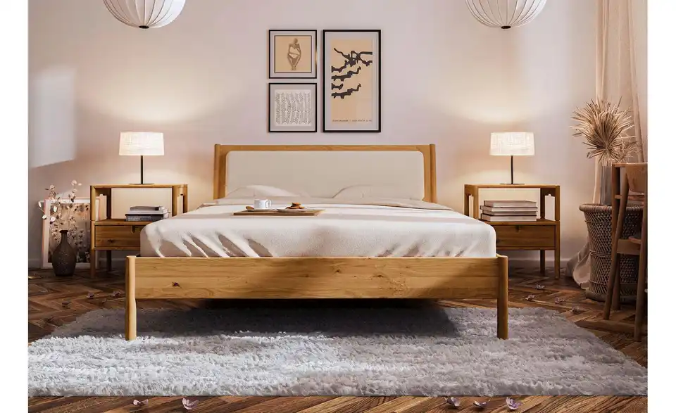 Massivholzbett mit gepolstertem Kopfteil Greta