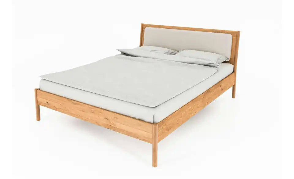 Massivholzbett mit gepolstertem Kopfteil Greta