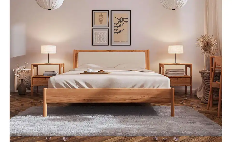 Massivholzbett mit gepolstertem Kopfteil Greta