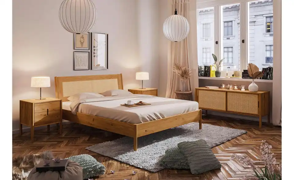 - Stabiles Massivholzbett in Kernbuche oder Wildeiche