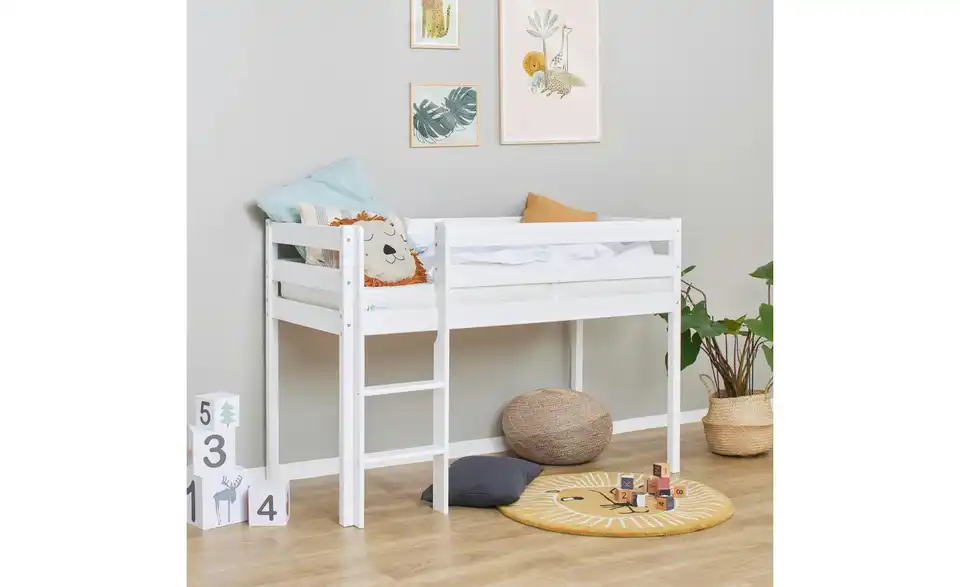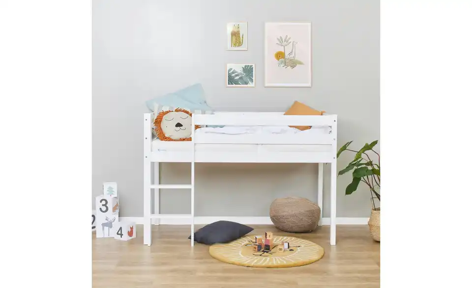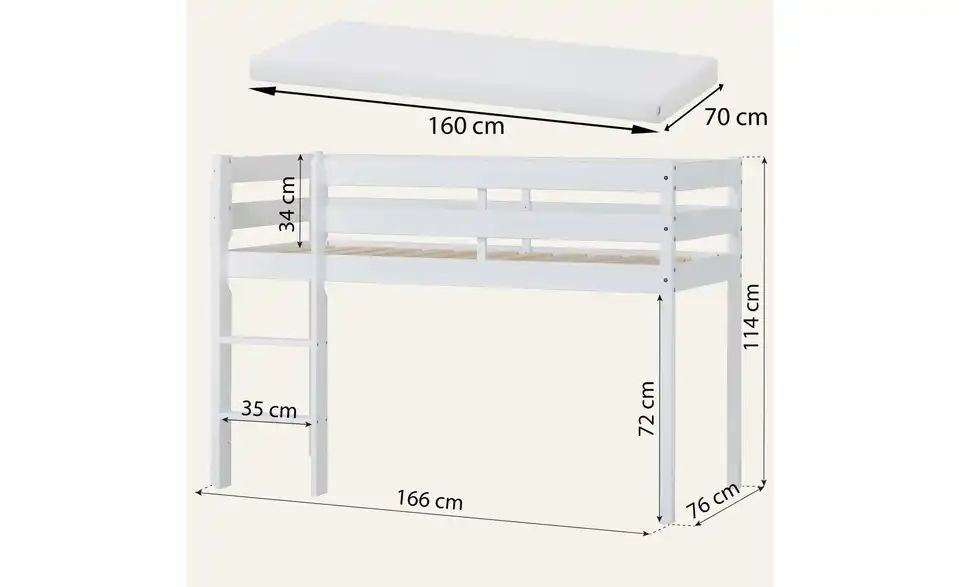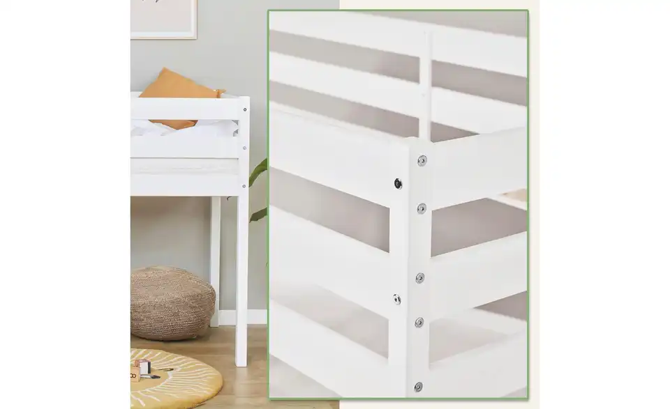 - Lieferumfang / mitgeliefertes ZubehörHalbhochbett / Spielbett inkl. Leiter und Rollrost