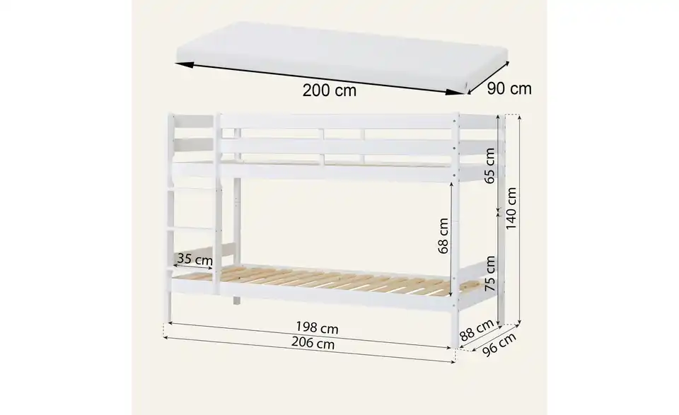 - Lieferumfang / mitgeliefertes ZubehörEtagenbett inkl. Leiter und Rollrosten