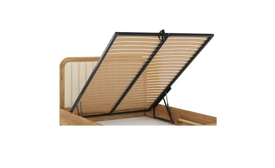 - Ausstattung / FunktionBettkastenöffnung am Fußteilinnen liegender Bettkastenmit Gasdruckfeder