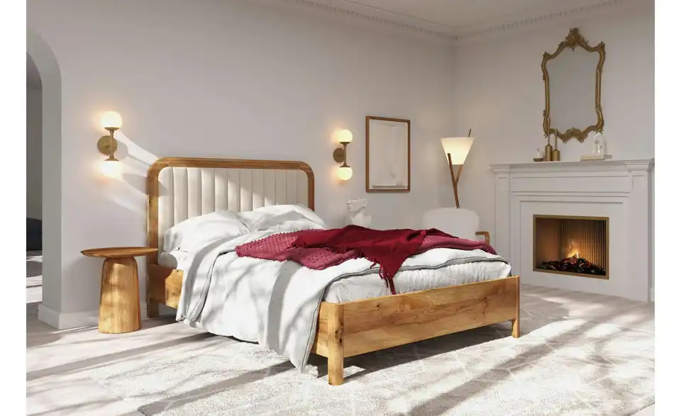 - Lieferumfang / mitgeliefertes ZubehörMassivholzbettgestell mit gepolstertem Kopfteil