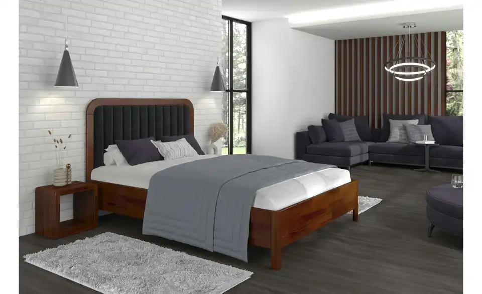 - Mehr zu MaterialMassivholzbett aus Buchenleimholz, nussbaumfarben lackiert