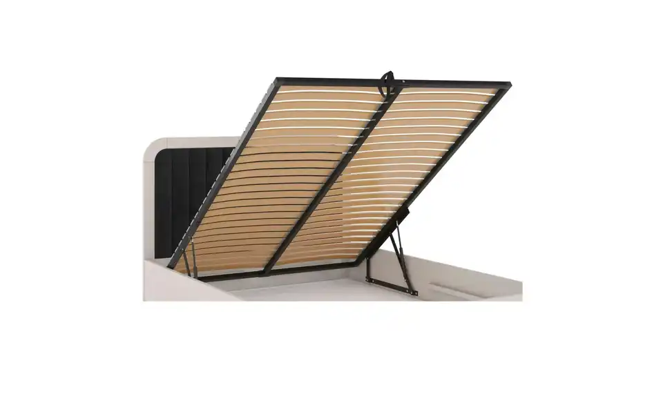 - Ausstattung / FunktionBettkastenöffnung am Fußteilinnen liegender Bettkastenmit Gasdruckfeder