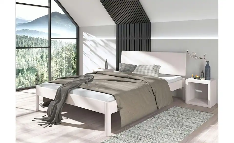 - Mehr zu MaterialMassivholzbett aus Buchenleimholz, weiß lackiert