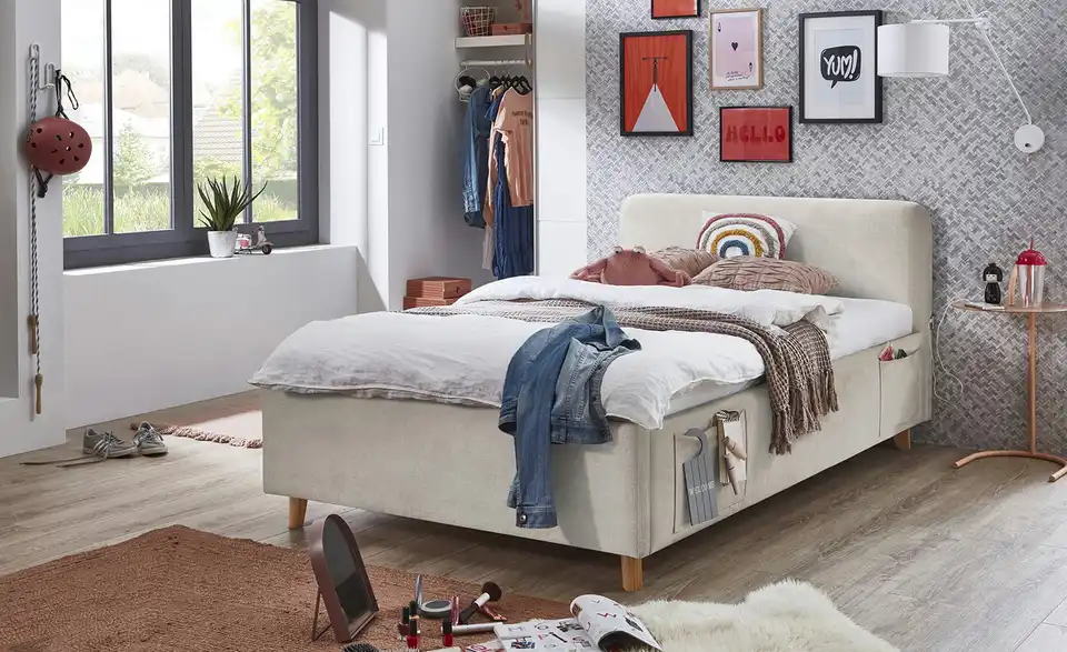- Zwei praktische Seitentaschen am Bett für Handy, Tablet oder Bücher