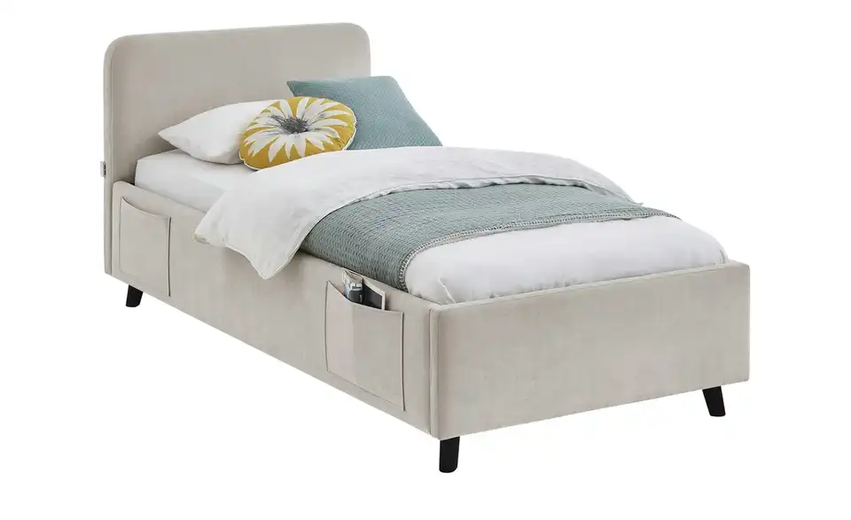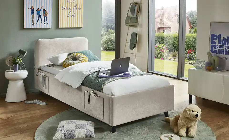 - Zwei praktische Seitentaschen am Bett für Handy, Tablet oder Bücher