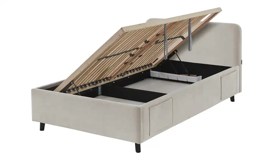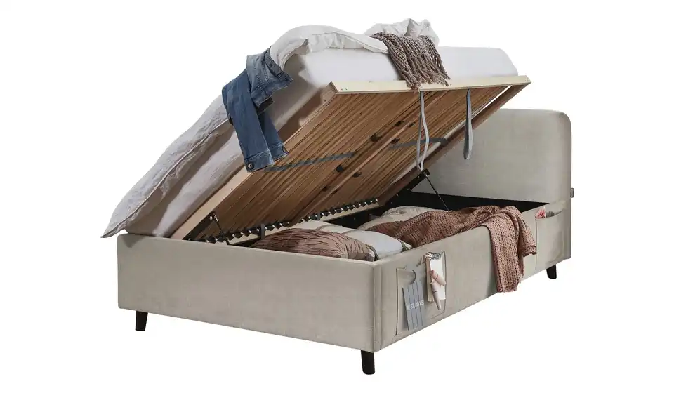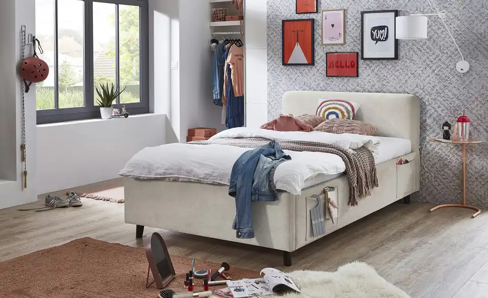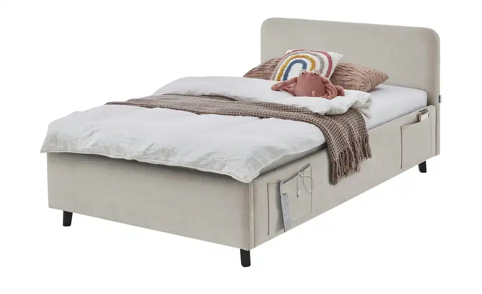 - Zwei praktische Seitentaschen am Bett für Handy, Tablet oder Bücher