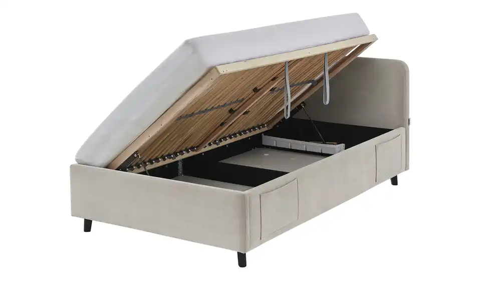 - Zwei praktische Seitentaschen am Bett für Handy, Tablet oder Bücher