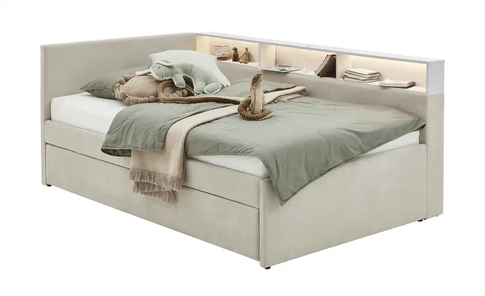 - Ausstattung / FunktionBettschubkastenausziehbarEingebauter USB-AnschlussBeleuchtung