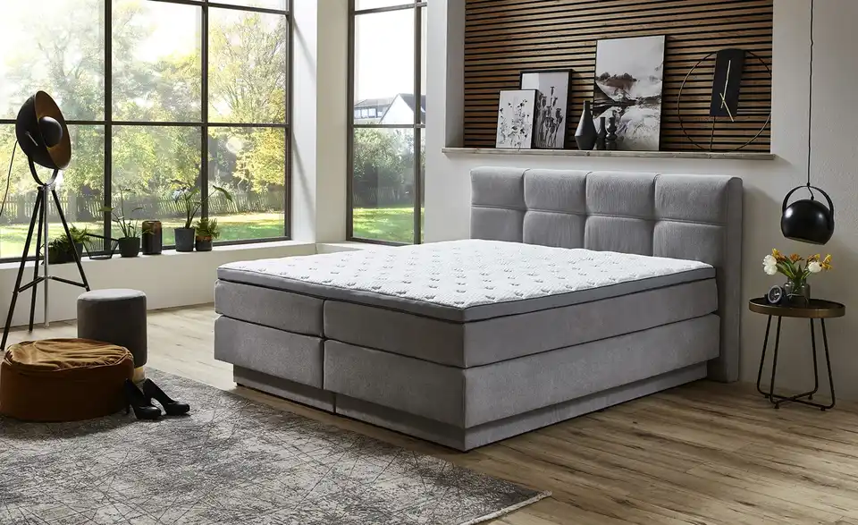 - Mehr zu Ausführungkeine Besucherritze durch einen durchgehenden TopperKopfteil Komfortschaum-Versteppung mit drei Abheftungen und Doppelziernaht an der VorderseiteTaschenfederkernmatratze, wendbar mit integriertem Topper4-seitiger ReißverschlussLiegeseite des Bezuges abnehmbar und waschbarMatratzenunterseite aus rutschhemmendem Microfaser-Gewebe