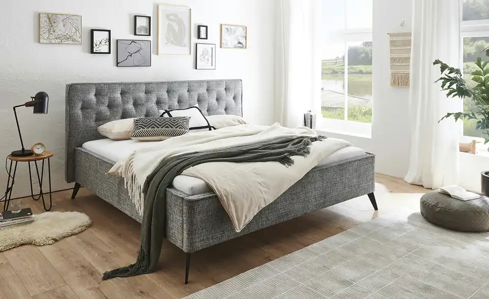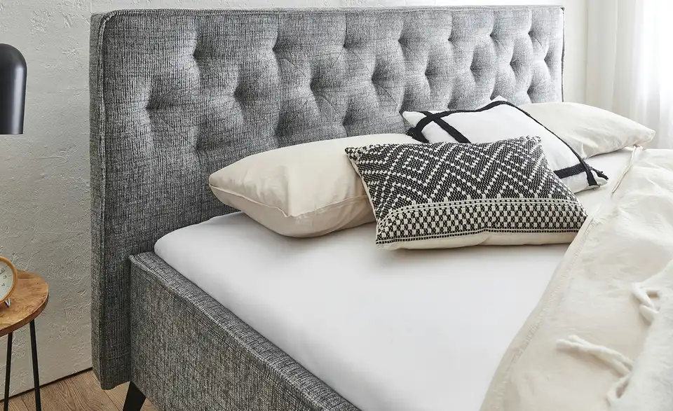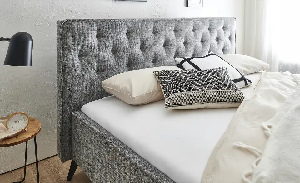 - AusführungPolsterbettgestell mit gesteppten Kopfteil und umlaufender Keder