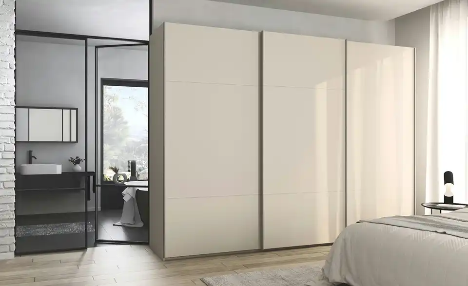 - Mehr zu AusführungDreitüriger Schwebetürenschrank inkl. ZubehörBestehend aus drei Elementen (je ca. 100 cm breit)