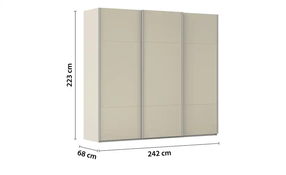- Mehr zu AusführungDreitüriger Schwebetürenschrank inkl. ZubehörBestehend aus drei Elementen (je ca. 80 cm breit)