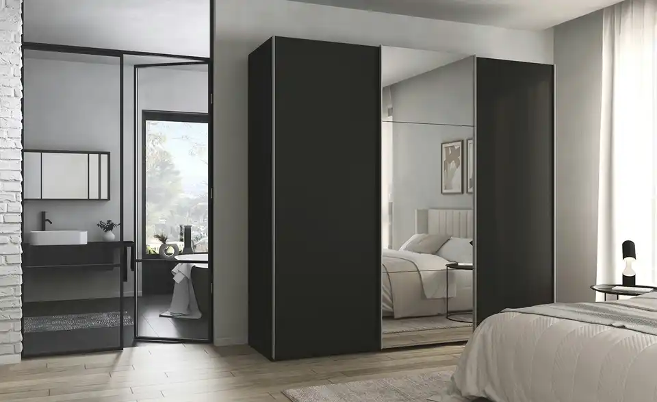 - Mehr zu AusführungDreitüriger Schwebetürenschrank mit Spiegel inkl. ZubehörBestehend aus drei Elementen (je ca. 80 cm breit)